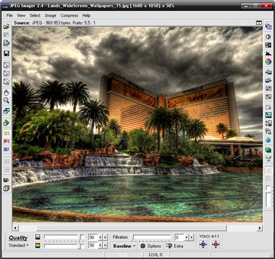 JPEG Imager – это интерактивная программа для сжатия изображений. Программа предоставляет предварительный просмотр сжатого изображения в реальном времени и вы можете сравнивать это изображение с оригиналом. Вы можете изменять различные параметры сжатия и наблюдать за изменениями почти мгновенно. Вы можете также указывать желаемый размер файла и позволить программе выбрать нужный параметр качества автоматически.