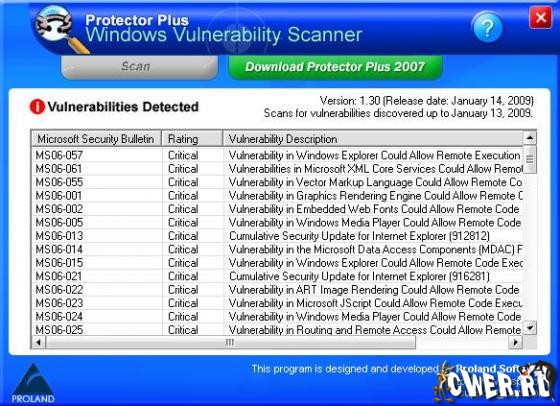 Windows Vulnerability Scanner - утилита, сканирующая операционную систему на предмет обнаружения уязвимости в системе безопасности, после чего выводит список обнаруженных брешей, соответствующий уровень опасности и ссылку на патч, их устраняющий.