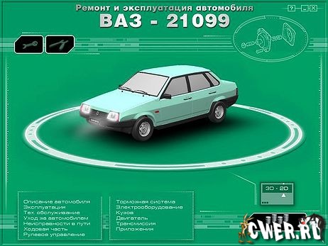 Подробное мультимедийное руководство по ремонту и обслуживанию автомобилей марки ВАЗ-21099. Все детально расписано и показано в картинках, схемах и чертежах. Необходимая вещь в библиотеке владельцев и ремонтников данного автомобиля.