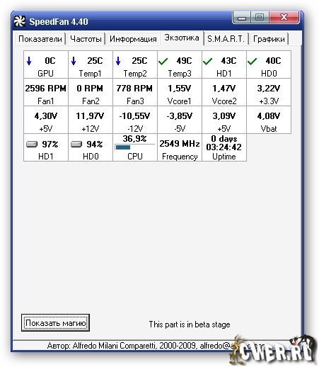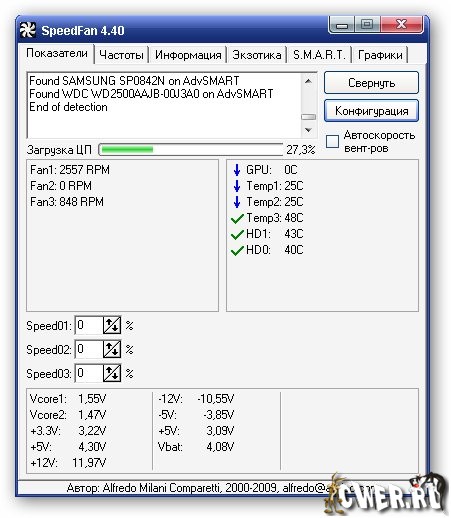 SpeedFan - системная утилита для контроля за параметрами материнской платы.