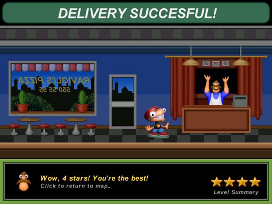 Жители Хруствиля голодны, и Ваша задача – доставить им горячую и аппетитную пиццу вовремя, ведь на кону репутация ресторана всеми уважаемого господина Равиоли! Любуйтесь восхитительными окрестностями и парками Хруствиля, не забывая вовремя доставлять пиццу каждому, кто сделает заказ! Вас ожидают 62 уровня прыгающего – топающего веселья, сумасшедшие бонусные уровни, золотые коллекционные звезды и интерактивная карта с множеством неизвестных предметов!