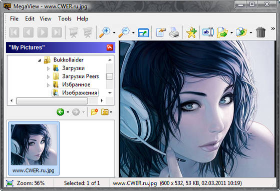 MegaView - универсальный вьювер (просмотрщик) графических и мультимедиа файлов, - фото, видео, аудио, web и документов. Поддерживает более ста различных мультимедийных файлов, текстовых, web, MS Office документов. Программа умеет производить пакетное конвертирование файлов из одного формата в другой, а так же редактировать графические файлы с помощью встроенного редактора.