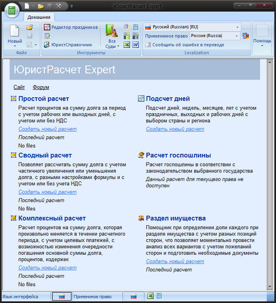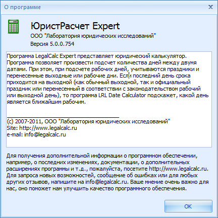 Скачать программу LegalCalc Expert 5.0.0.754 (7,07 МБ):