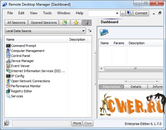 Remote Desktop Manager – это небольшое приложение для контроля за удаленными соединениями. С программой Remote Desktop Manager вы сможете добавить, редактировать, удалить, систематизировать или быстро найти удаленное соединение. Утилита совместима с Microsoft Remote Desktop или с Terminal Services, очень простая в использовании, но в то же время достаточно мощная и эффективная. Remote Desktop Manager подойдет для любого пользователя.
