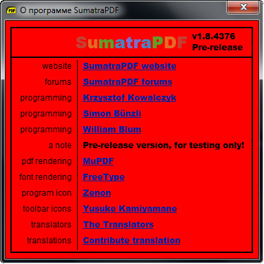 Скачать программу Sumatra PDF 1.8.4376 Beta (4,5 МБ):