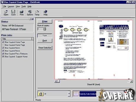 Clickbook - мощная, но лёгкая в использованиии утилита печати, которая превращает односторонние документы в профессиональные буклеты, брошюры, адресные книги, шпаргалки, открытки, календари и многое другое. Можно выбирать из сотни готовых шаблонов (стилей) или конструировать свои.