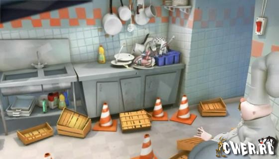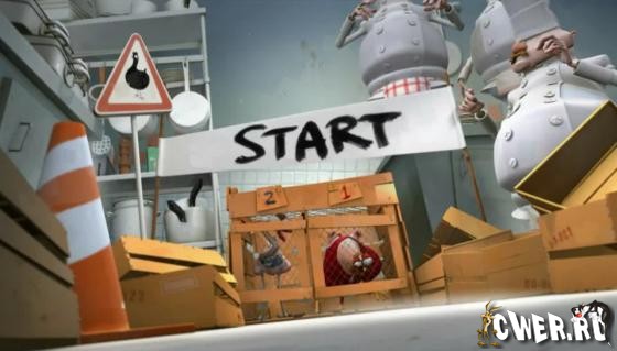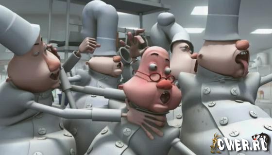 Петух мечтает о свободе, сидя в клетке на кухне ресторана. А тем временем поварами организованы петушиные бега.