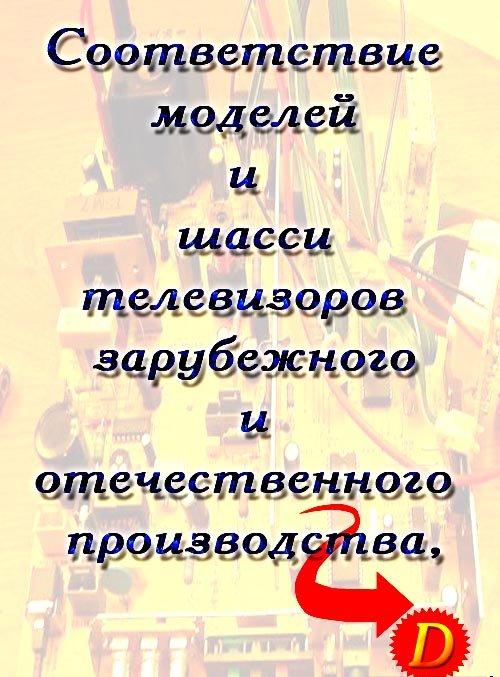 В данном справочнике в отличном качестве даются таблицы соответствия моделей и шасси телевизоров, их функциональный состав, указываются наименования пультов дистанционного управления. Общее количество фирм, рассмотренных в справочнике - более 250. Общее количество моделей - более 50000.
