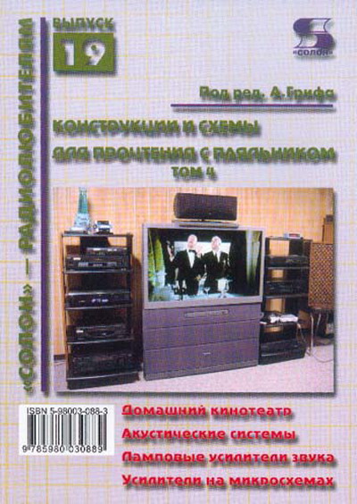 Том 4 посвящен только аудиотехнике. В нем читатель найдет статьи по основным направлениям, связанным с получением высококачественного звучания. Особое место здесь занимают системы для «Домашнего кинотеатра». Именно поэтому том 4 открывается главой, в которую вошли статьи, знакомящие радиолюбителей-конструкторов с проблемами создания аудиосистем для «Домашнего кинотеатра», форматами многоканальной звукозаписи, форматами изображения.